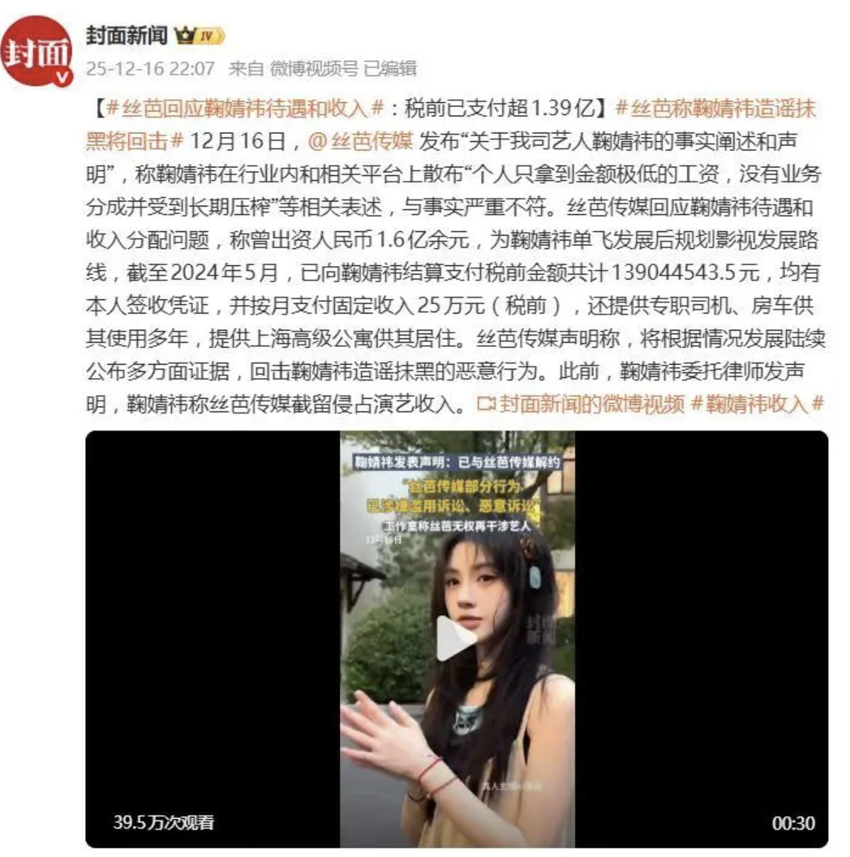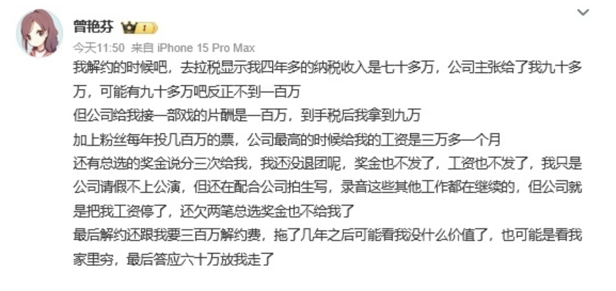 不过从当前丝芭的操作和爆料趋势,猜测其手中所谓的“经济指控”黑料,恐怕是准备拿单飞、双重合同甚至是税务问题说事。