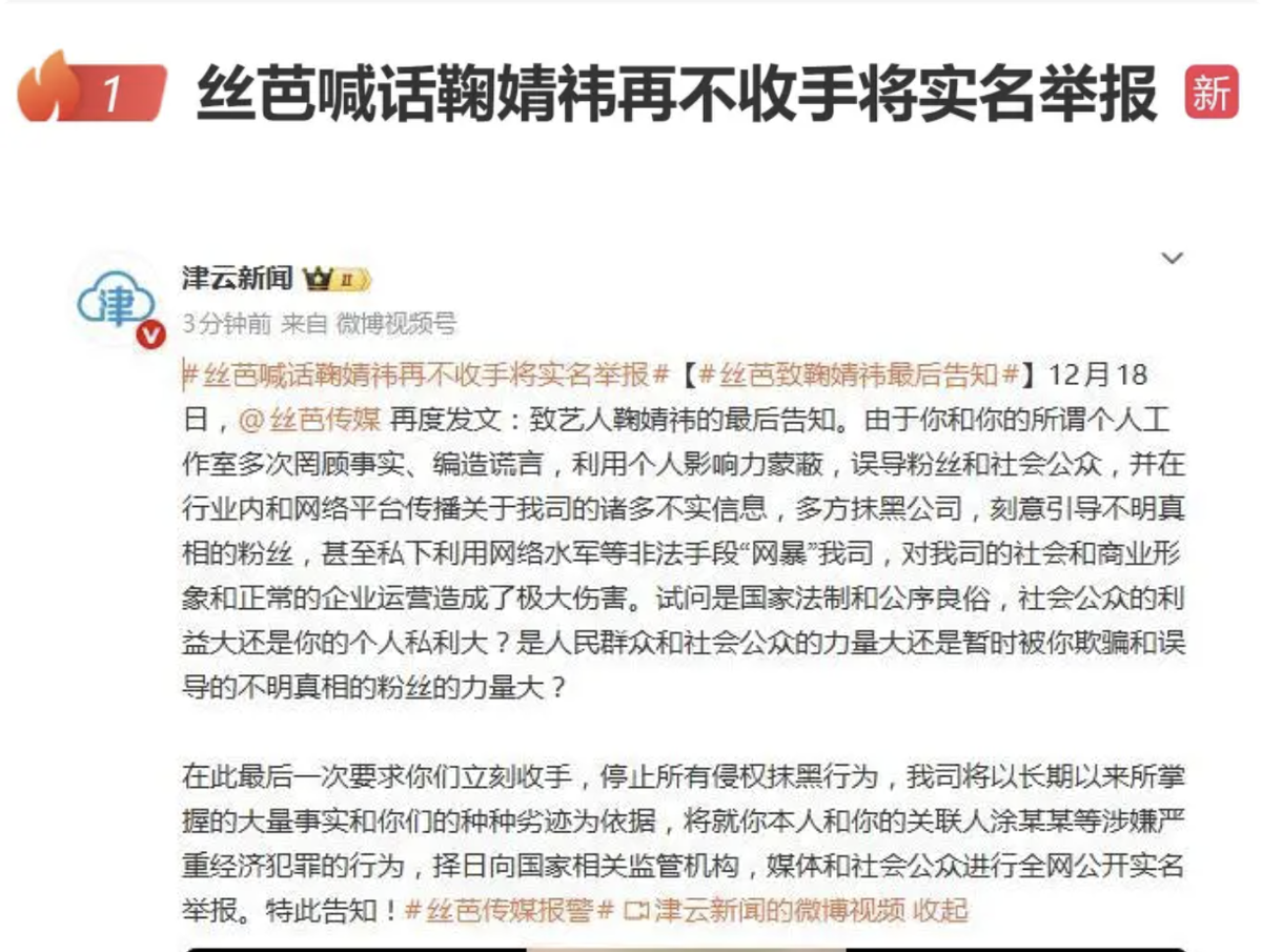 开战!丝芭称:即将实名举报鞠婧祎!