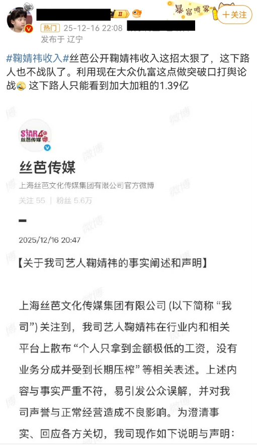 丝芭原本想晒账本证明鞠婧祎翻脸不认人,结果先是被爆拖欠造型费、后又被前成员爆料“鞠婧祎阳了之后公司冷漠处理”。
